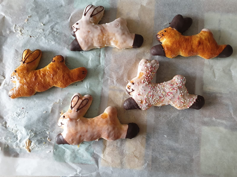 Wieder im Büro angekommen, stand der konkrete Plan bereits einige Anrufe später fest. Ein leckerer, frisch gebackener Osterhase für den Magen und schöne Blumen für die Seele. Wer würde sich darüber nicht freuen. In Kooperation mit der Bäckerei Hühnemeyer und dem Blumengroßhandel Landgrad organisierte er 1.200 Quarkhasen und 1.300 Blumentöpfe sowie einen großen Blumensmiley vor den Gebäuden. Die Hasen und Blumen wurden dann am Karfreitag persönlich an die Bewohner und Mitarbeiter der Einrichtungen Lebenshilfe Düsseldorf e.V., Seniorenzentrum „Zum Königshof“, Haus St. Josef und Haus Lörrick e.V./Wohnstift Haus Horst verteilt.